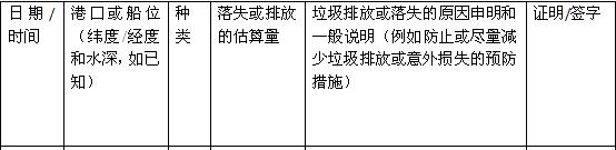 (一)《垃圾記錄簿》不論是船舶正式航海日志的一部分,還是其他形式,均應(yīng)與修正案附錄II格式相同。新版《垃圾記錄簿》電子版可在中國海事局網(wǎng)站下載。