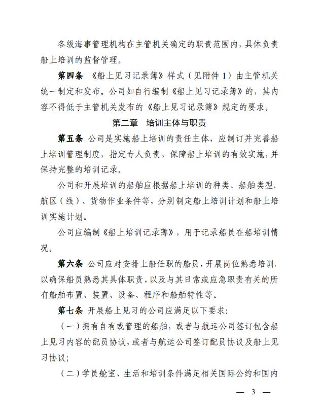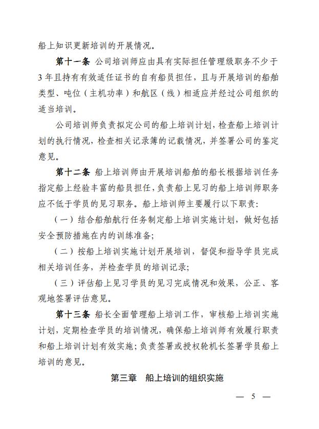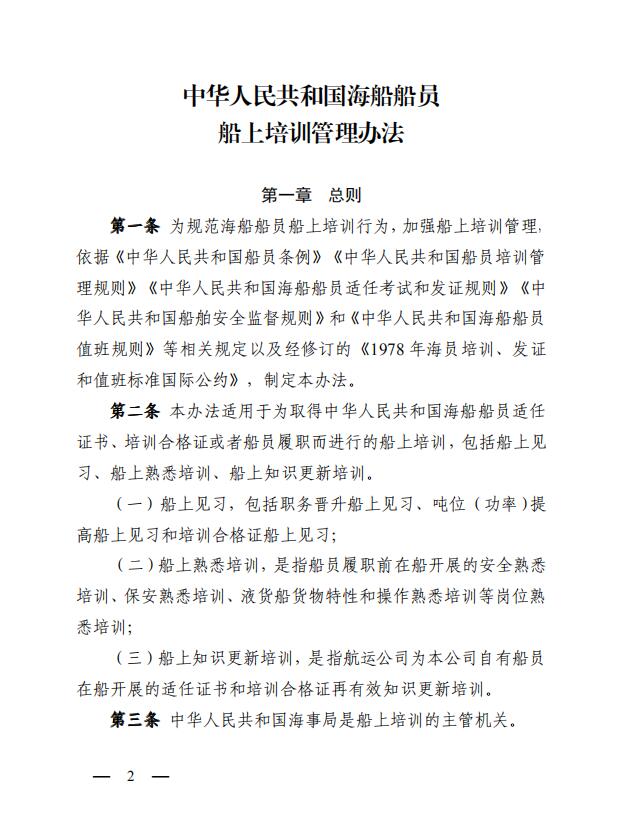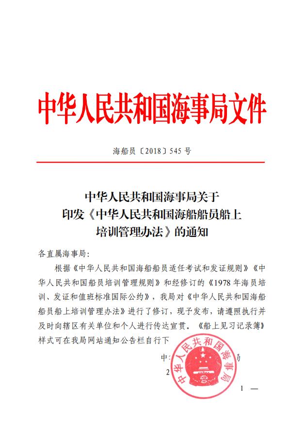 中華人民共和國(guó)海事局關(guān)于印發(fā)《中華人民共和國(guó)海船船員船上培訓(xùn)管理辦法》的通知