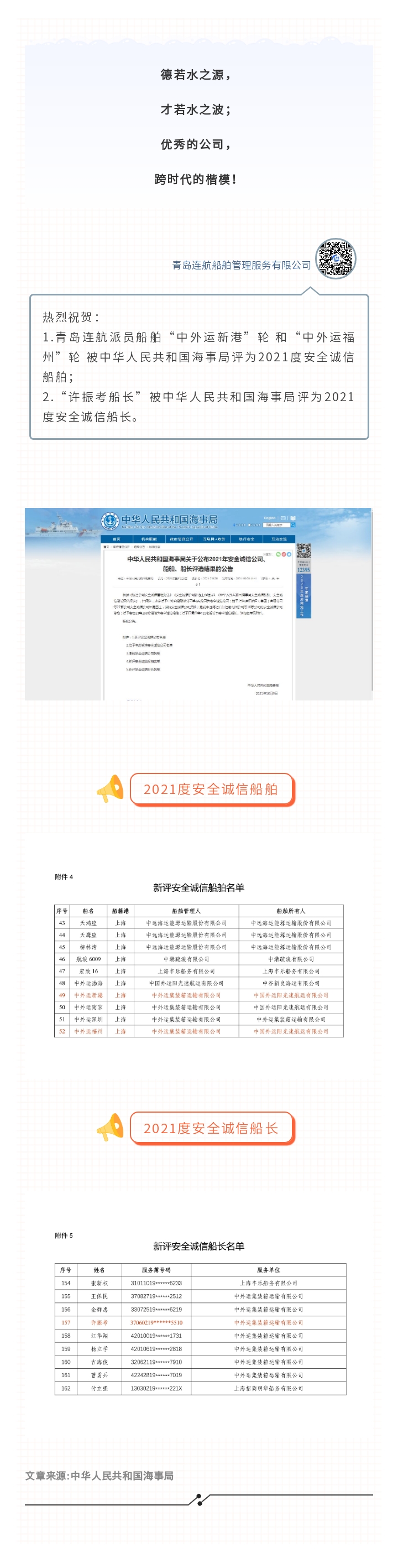 2021年安全誠(chéng)信公司、船舶、船長(zhǎng)評(píng)選結(jié)果公布